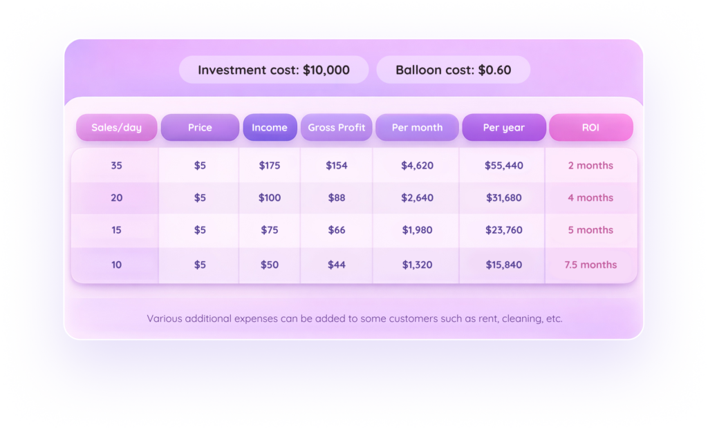 Prior business experience is helpful but not required. We provide training and ongoing support to help operators understand machine operation and day-to-day management.